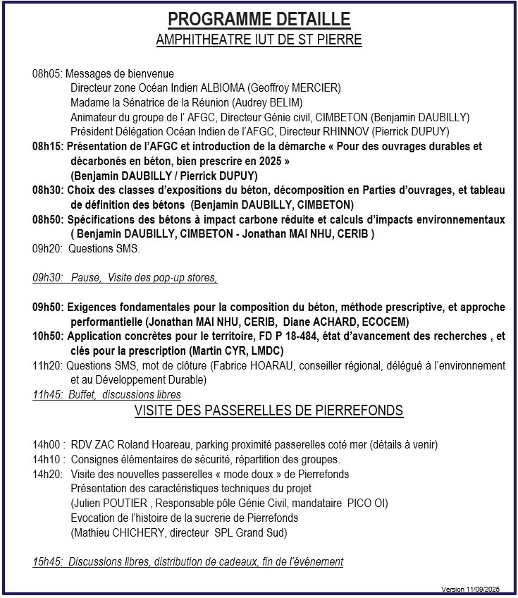 « Pour des ouvrages en béton durables et décarbonés – Bien prescrire en 2025, organisée le 19 septembre à l’IUT de Saint-Pierre. »