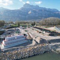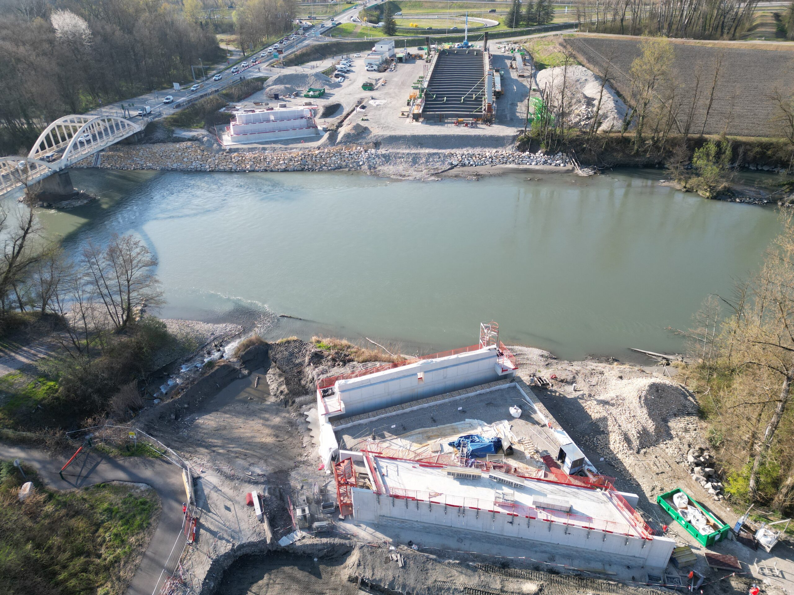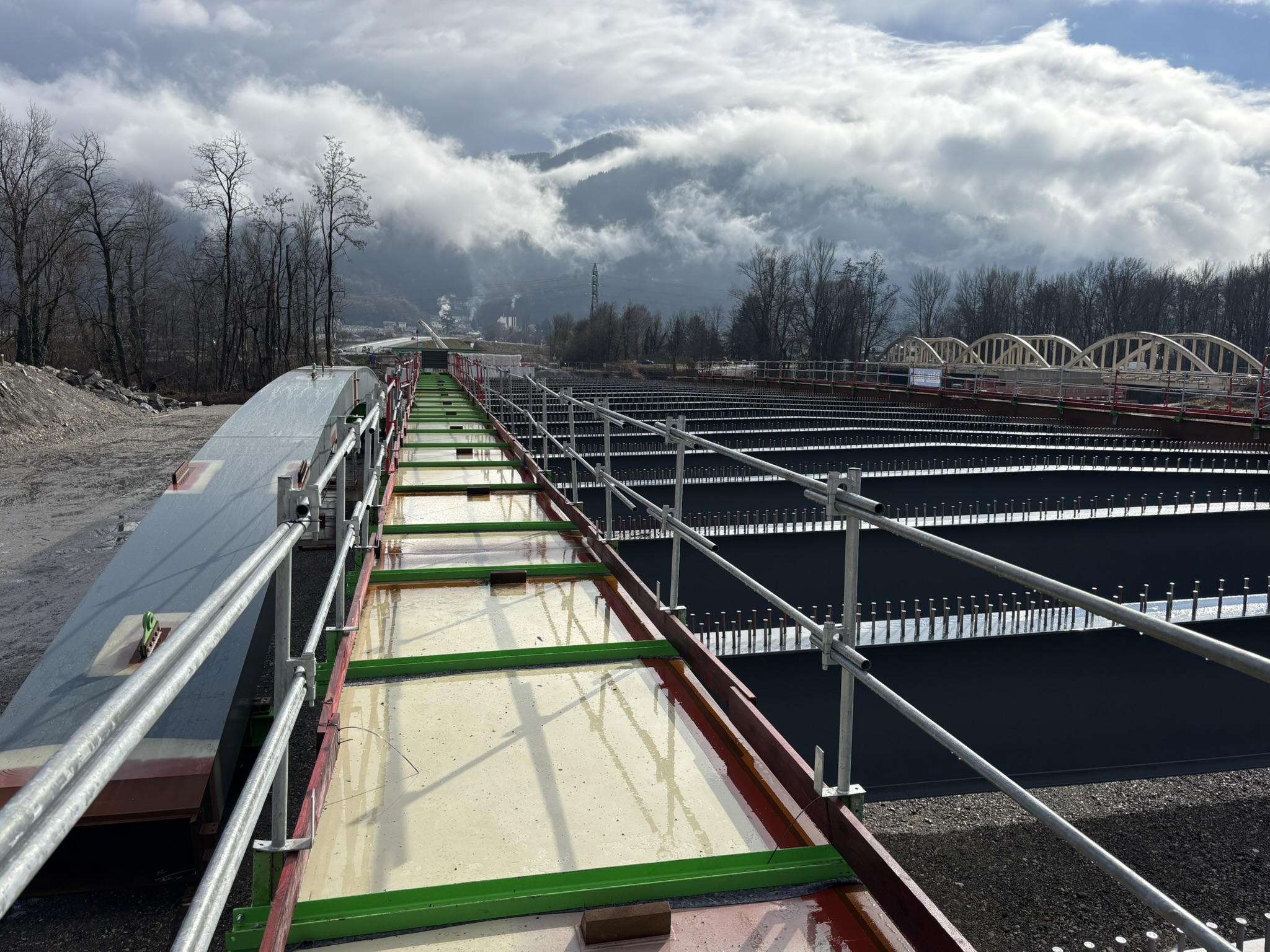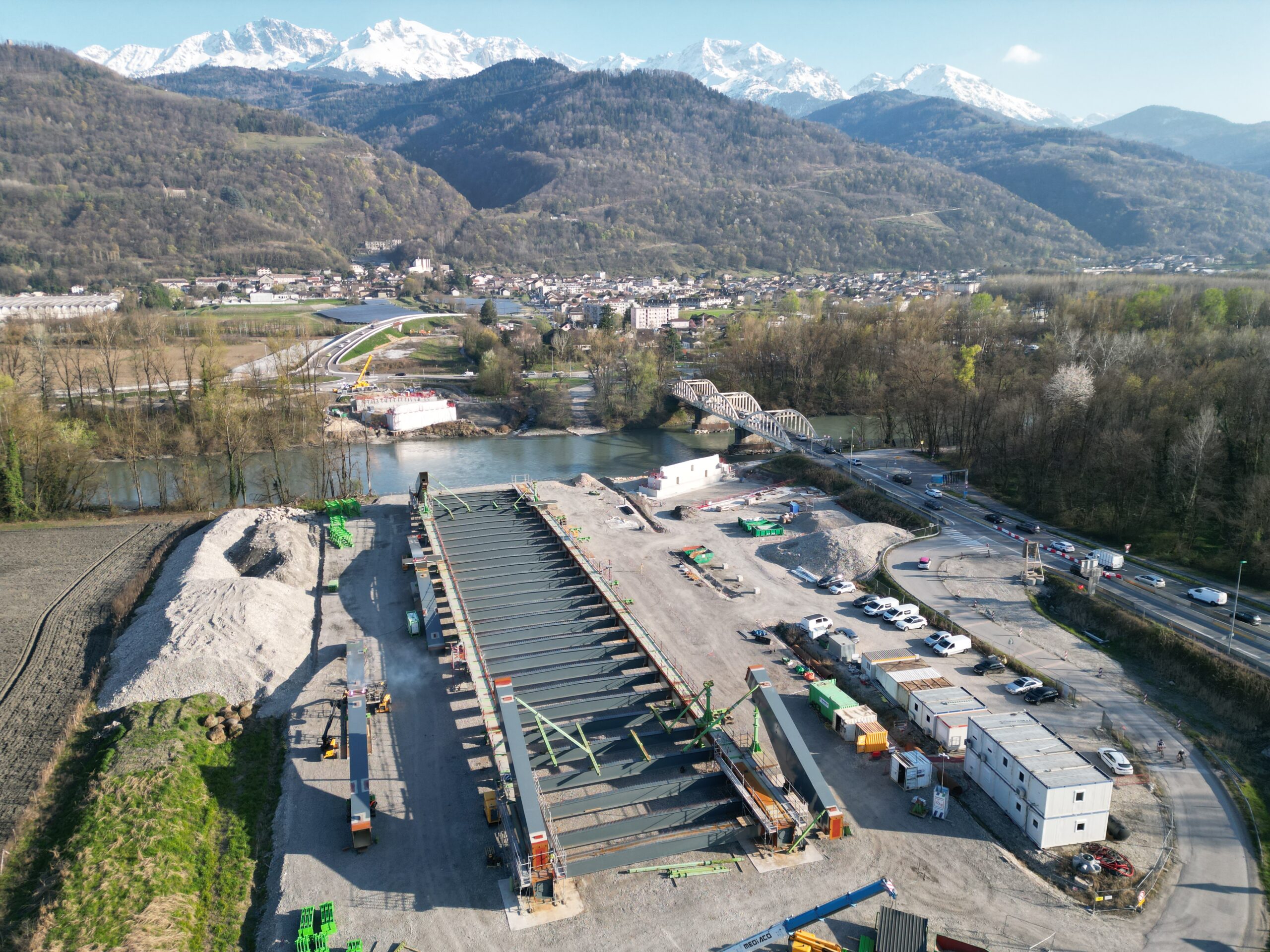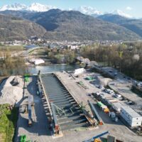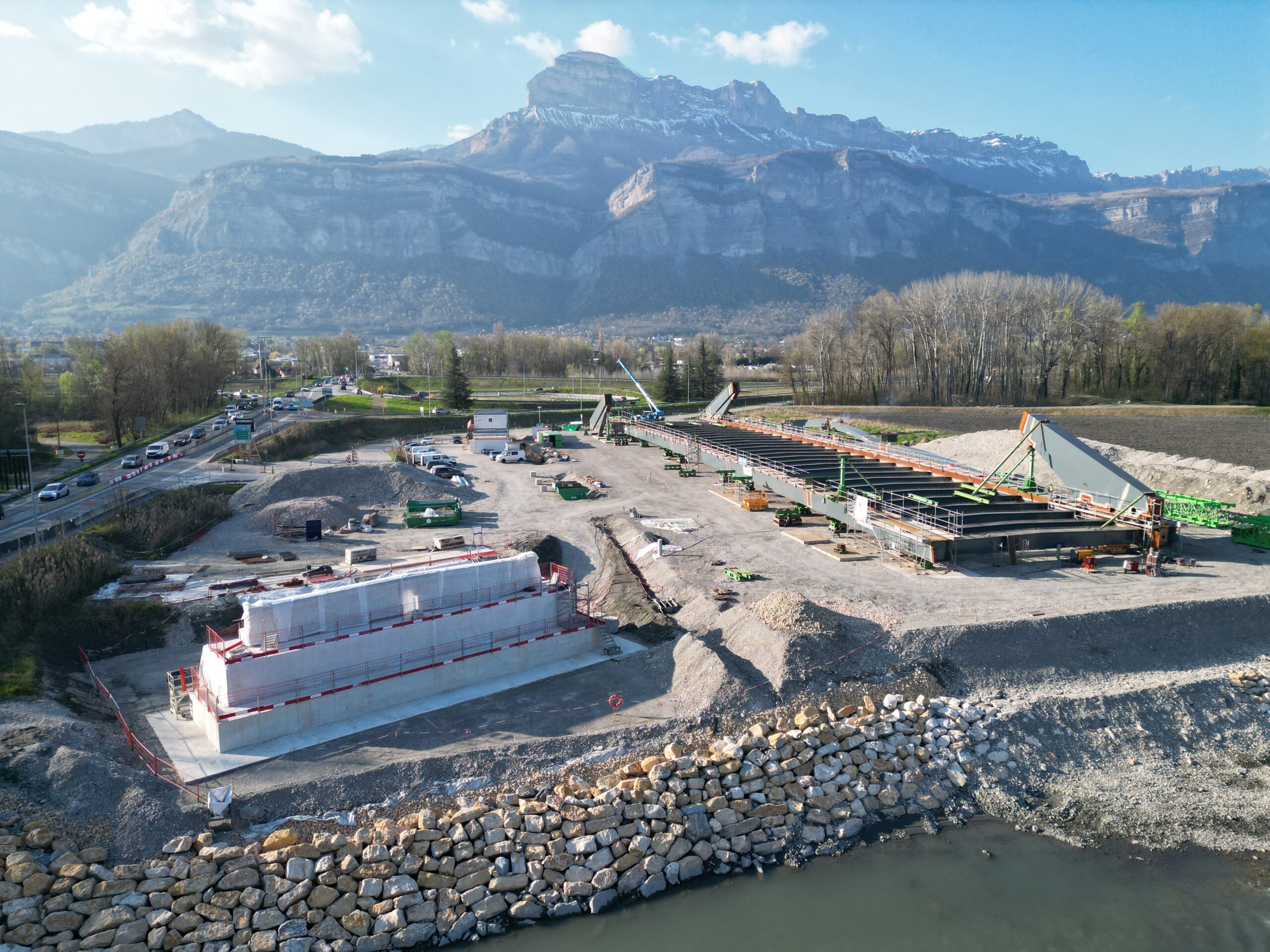 Les travaux sont en cours de réalisation, et assurés par un groupement CAMPENON BERNARD CENTRE EST / GAGNE / TERELIAN / MIDALI / EUROVIA ALPES / MENARD. A la date de la manifestation, les culées seront réalisées et la charpente métallique sera en cours d’assemblage sur l’aire de montage.
