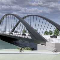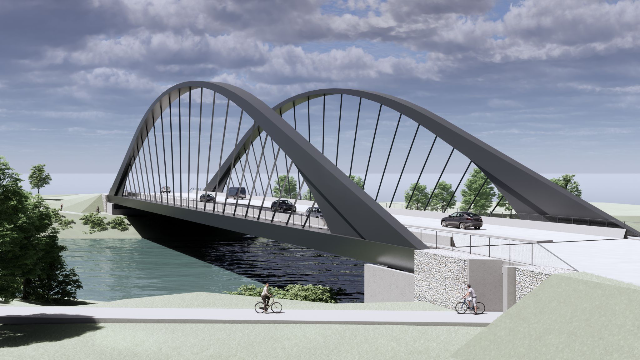 Le projet conçu par les équipes de setec als à Lyon en partenariat avec l’architecte AEI est un pont bowstring très élégant, portant les 4 voies de circulation sur 23m de largeur. L’arc culmine à 18m de hauteur au dessus du tirant. La partie mode doux a été séparée sur une passerelle indépendante qui reposera sur les piles maçonnées de l’ouvrage existant, ainsi conservées.