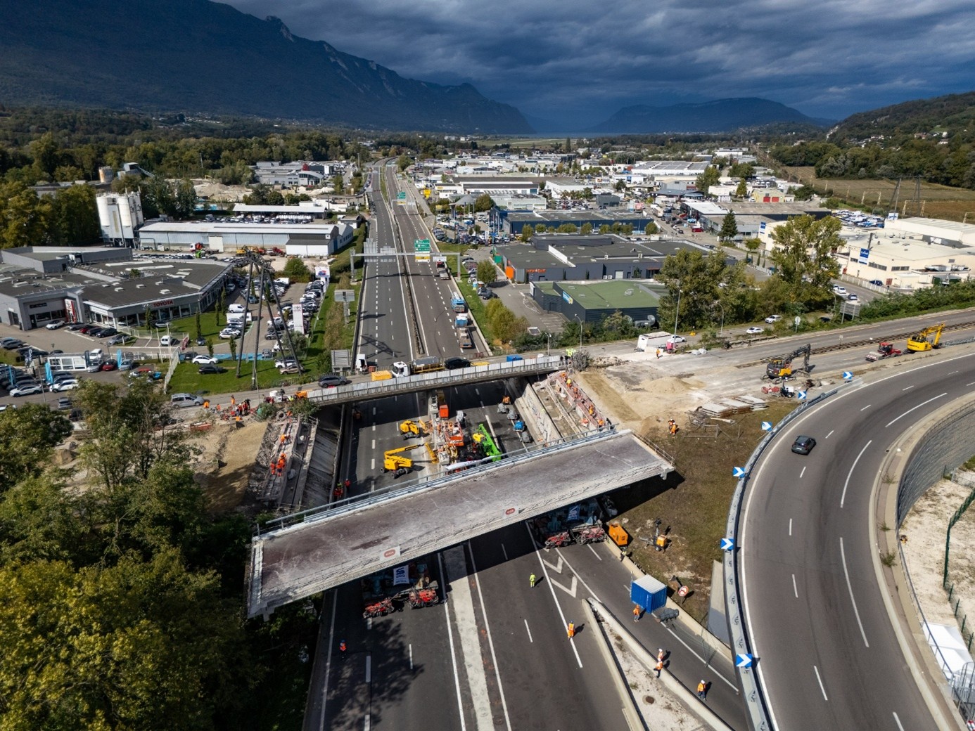Seulement 10 mois pour concevoir, étudier en détail et construire les nouveaux tabliers en structure mixte avant le week-end fatidique de coupure de l’A41N et de la Voie Rapide Urbaine de Chambéry. C’est uniquement en 60 (petites mais très intenses) heures que les tabliers ont été remplacés. Un chantier dans le chantier où tout était chronométré et millimétré !