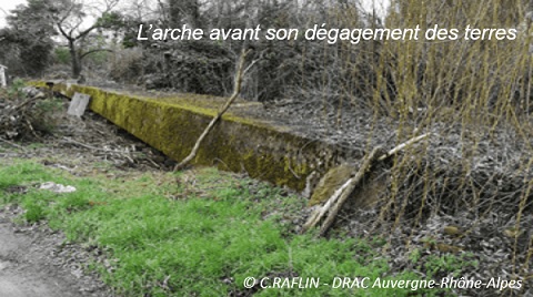 Cette arche, en grande partie enterrée, n’était plus visible que dans sa partie supérieure. Son dégagement provisoire en 1993 a permis de constater son bon état de conservation et la pérennité de ses qualités de résistance.