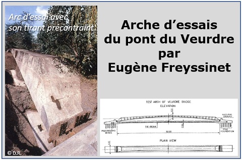 L’Arche d’essais du Pont du Veurdre a été inscrite le 1er octobre 2021 à l’inventaire des Monuments Historiques. Il est important de rendre hommage à Eugène Freyssinet qui, en construisant cet ouvrage éprouvette, a réalisé le premier tirant-buton en béton précontraint au monde pour assurer l’immobilité des culées de l’arche.